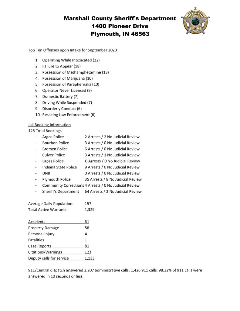 On Monday September 25th, 2023, Marshall County Central Dispatch was contacted about a trailer that had been stolen from a property in the 10, 000 block of Union Rd. Upon an officer arriving and investigating the incident, it was found that the trailer involved had been taken in late August or early September. The trailer involved is a white 2 axel enclosed trailer with the logo “AR’ and Architectural Renovators, LLC in black lettering on all sides of the trailer. Anyone with information about this theft is asked to contact 1st/Sgt. Laffoon at the Marshall County Police Department