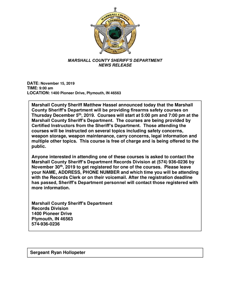bond of $1,500.00. Marshall County Officers were assisted by Argos PD.